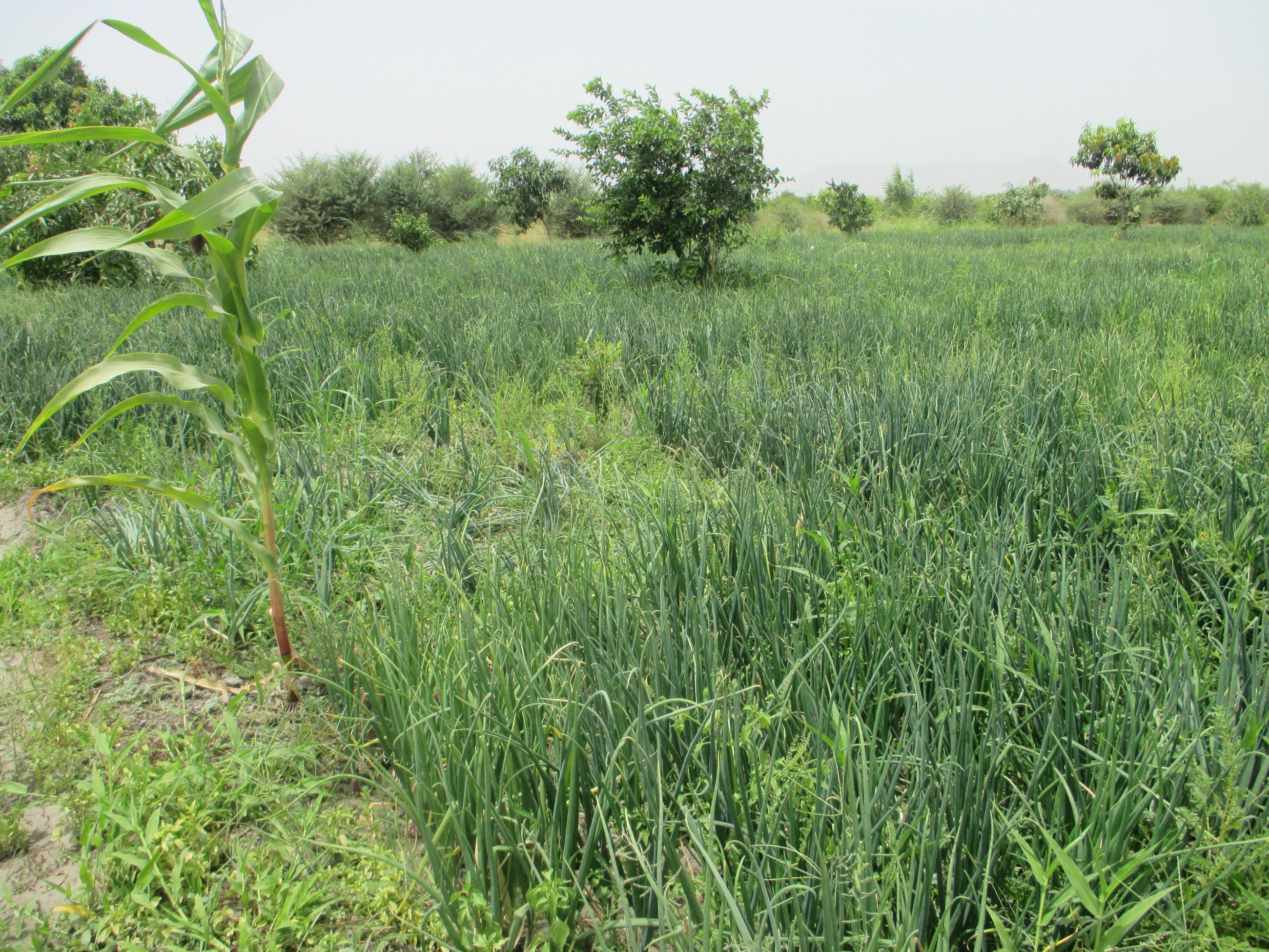 Champ d'oignons au village